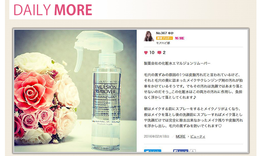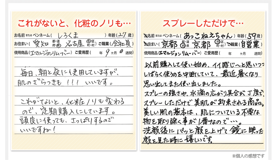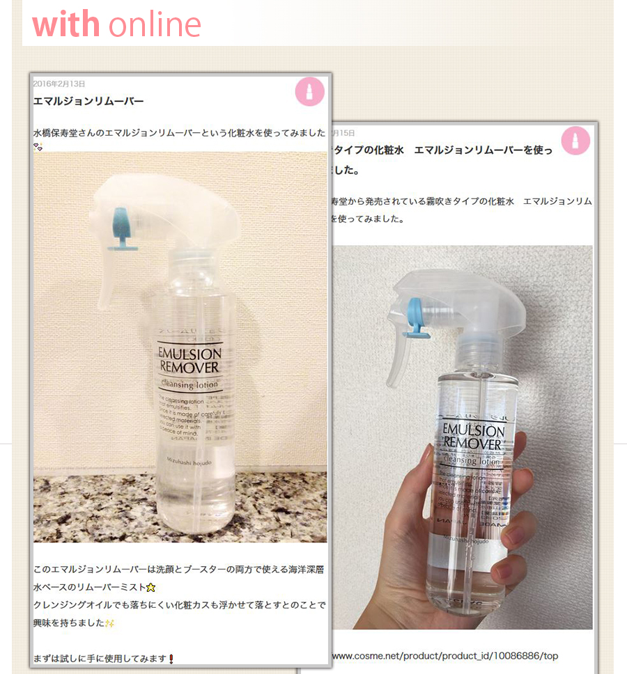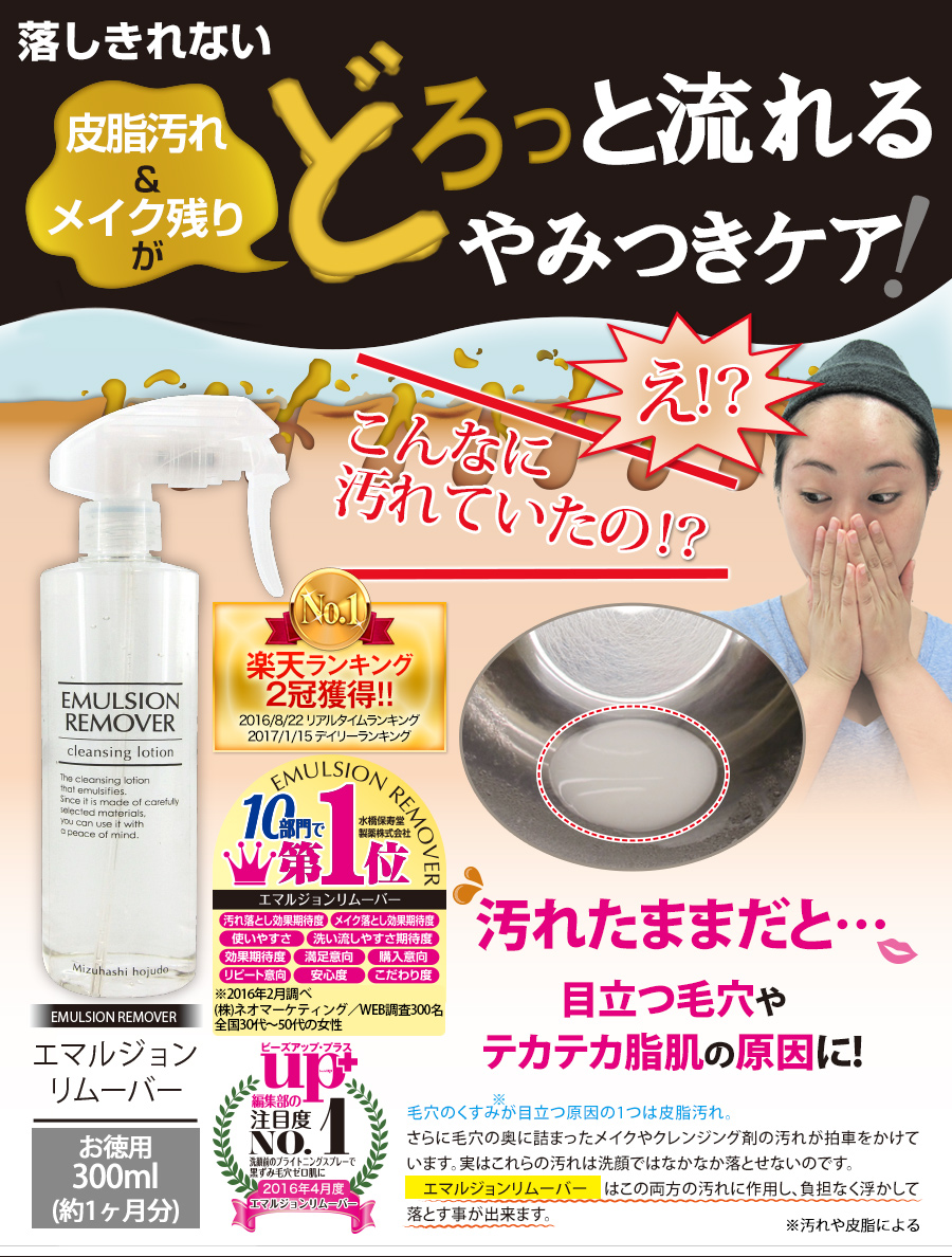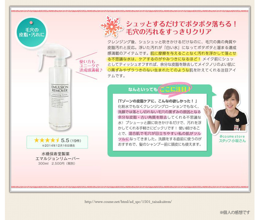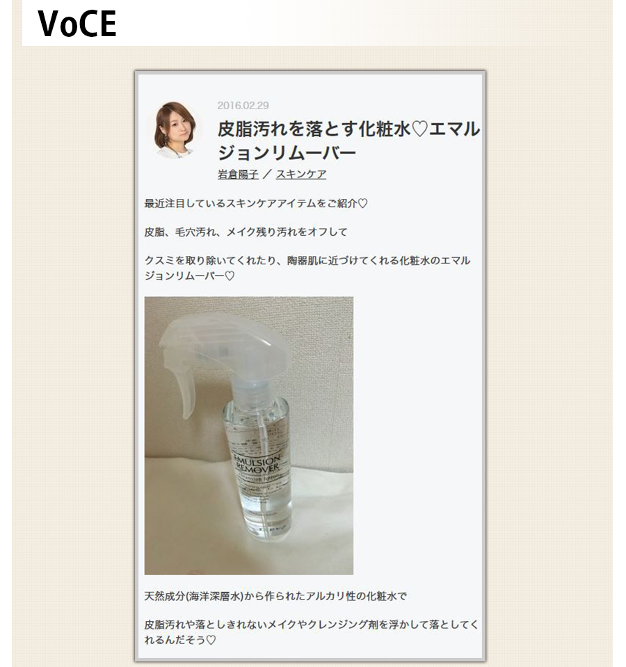 内 これこれ。「エマルジョン リムーバー」っていうローションなんだけど、メイク落とし後にスプレーするだけなんだ。